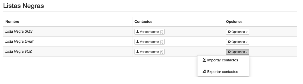 Las bajas a través de importaciones son las que se realizan a través de la herramienta de importar contactos sobre Lista Negra que elijas.