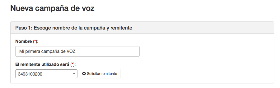 En este paso escogeremos un nombre para identificar la campaña de VOZ y el remitente de la llamada, que en este caso será un teléfono para VOZ validado.