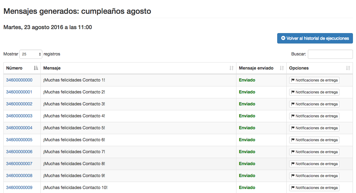 - Los contactos a los que se les envió en esa ejecución y el SMS enviado