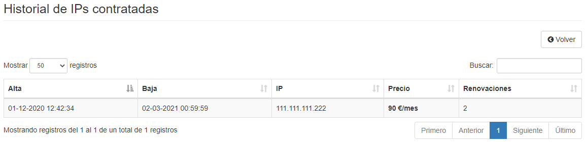 - Renovaciones: Número de periodos renovados de la IP dedicada.