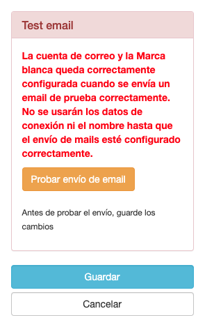 La marca blanca no podrá activarse hasta que no se haya configurado correctamente una cuenta de correo y se haya envíado un email de prueba.