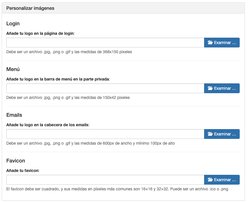 Puedes añadir imágenes para personalizar tu marca blanca y seguir tu imagen corporativa. Las imágenes que puedes añadir son: