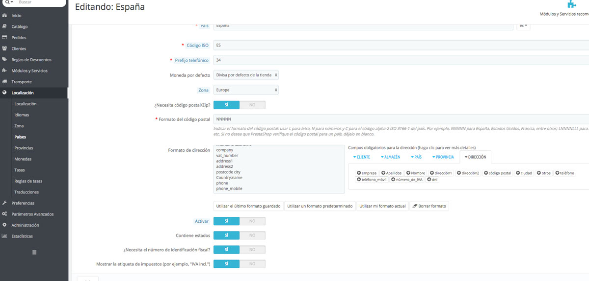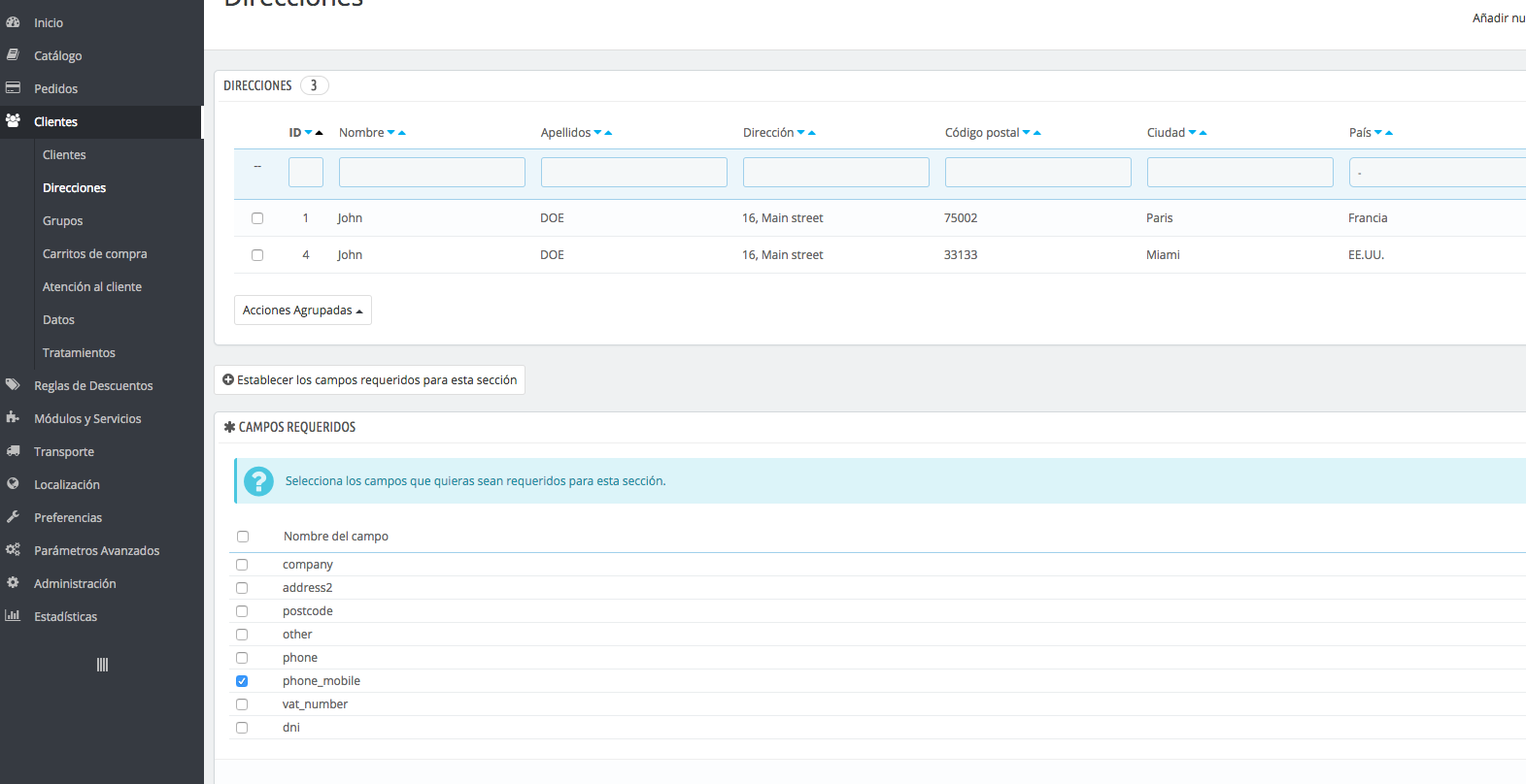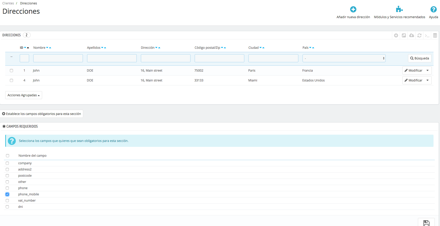 - Habilitar teléfono móvil y hacerlo obligatorio en direcciones de envío en Prestashop