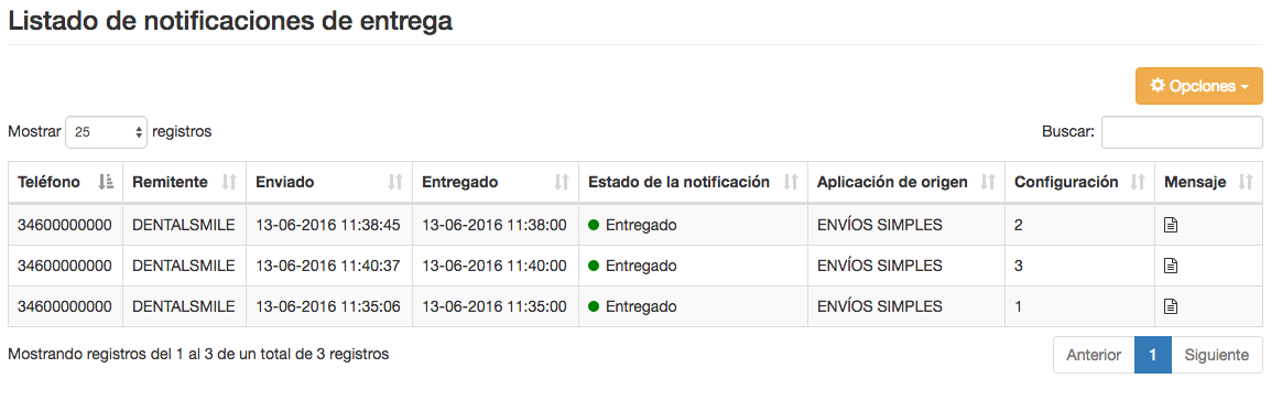 - Listado de notificaciones de entrega