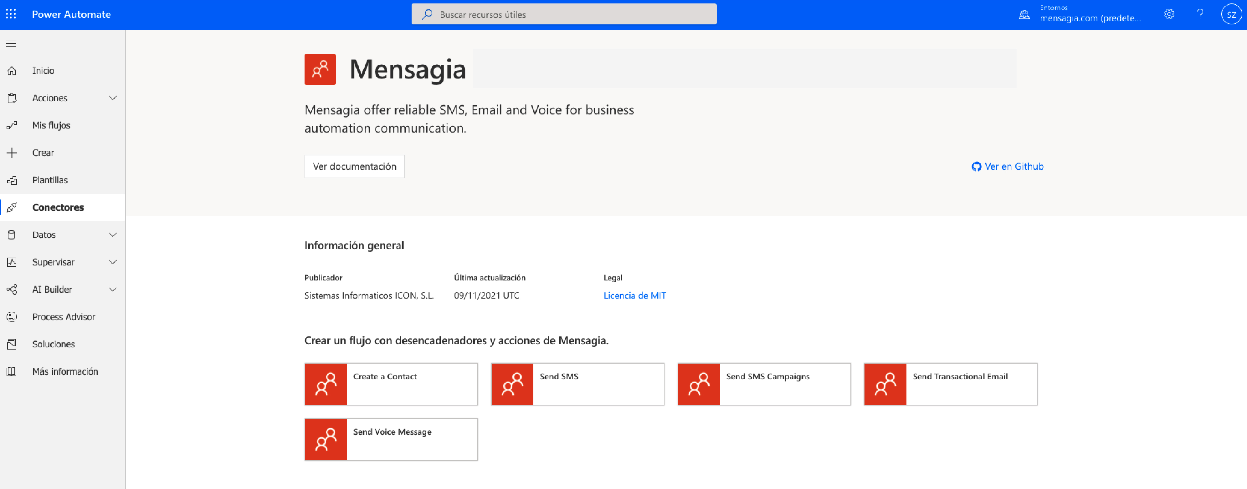 Consulta la documentación del conector de Mensagia para Power Automate en la documentación del conector de Mensagia para Power Automate