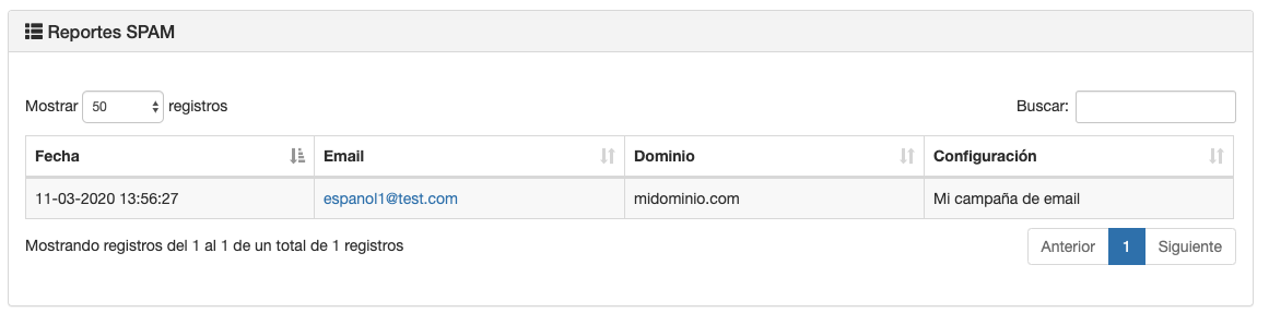 Ponemos a tu disposición un Informe de Reportes SPAM para que puedas conocer de forma rápida y fácil quién ha marcado como SPAM tus comunicaciones y desde qué campaña.