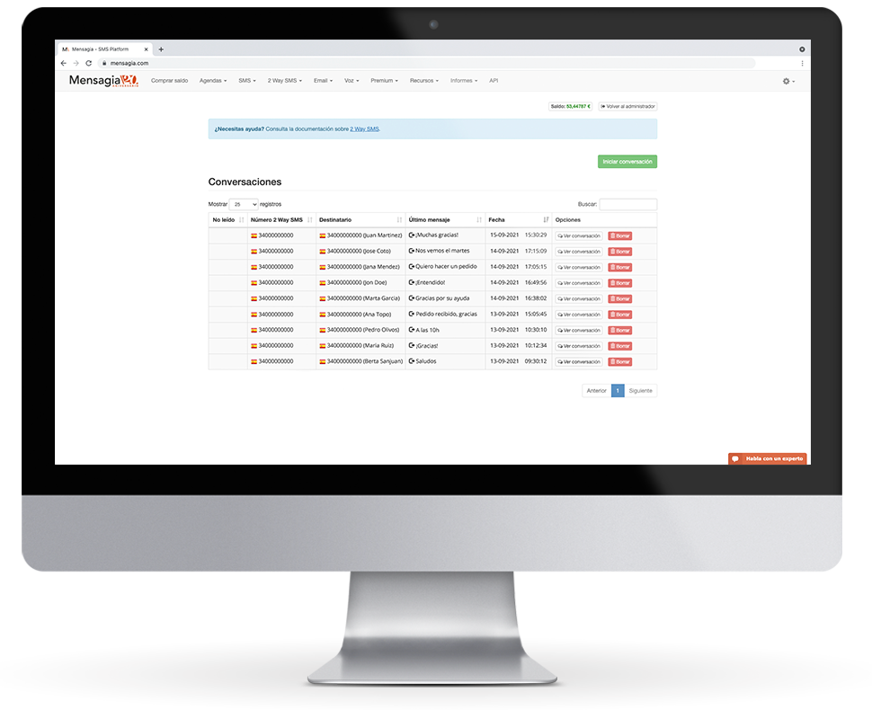 Comunícate con tus contactos y permíteles responder con facilidad a través de SMS. Utiliza un número virtual para recibir las respuestas en tu apartado de conversaciones.